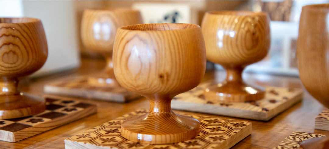 木の香りやぬくもりを感じられる、器やお土産の品々も取り揃えておりますので、ぜひご覧ください。