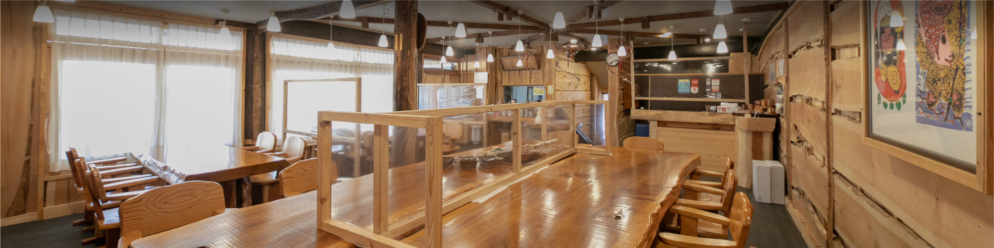 一枚板のテーブルが眼を見張る「お食事処神城」。